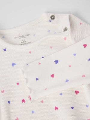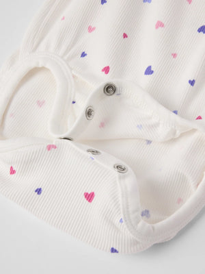 Ribbed babygrow in thin, organic cotton for your little one. It has extra-soft, flatlock seams that are gentle on sensitive skin and features a cute frilled edge at the sleeve cuffs. Snaps at the crotch and shoulder make dressing easy.