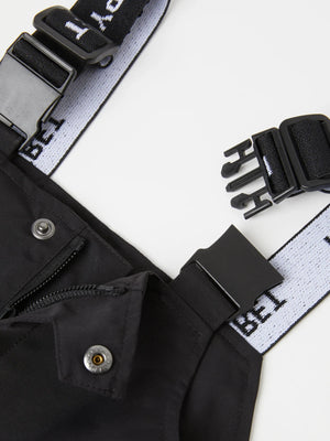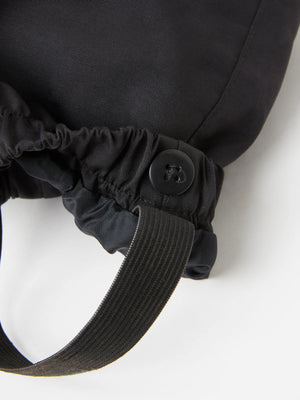 These shell dungaree style trousers for babies and toddlers are incredibly wind and waterproof with adjustable braces making them ideal for splashing in puddles or walks in the buggy. Elasticated at the back for a comfortable fit our black shell baby dungarees are 100% waterproof with taped seams and a long zip to make them easy to get on and off.