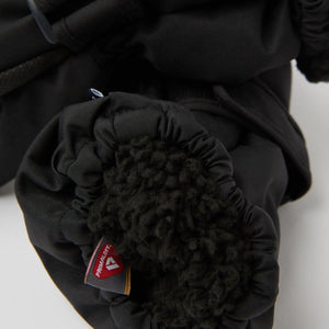 Who's ready to build a snowman! These black kid’s winter mittens are exactly what you need to keep hands warm and dry in cold conditions. Completely waterproof, they have a lightweight padding with a cosy fleece lining. The pre-shaped fit gives great freedom of movement while the textured palms give better grip. The elastic cuffs keep out the elements and are designed to be worn over or under coat sleeves.