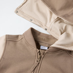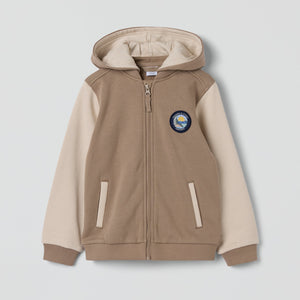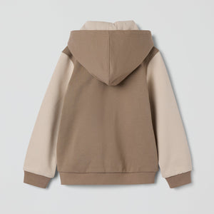 Hoodie in 100% organic cotton, with soft cuffs and hem for a comfy fit. The hoodie has two front pockets and a detachable hood with soft jersey lining. The hood is attached with snaps.