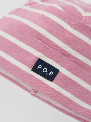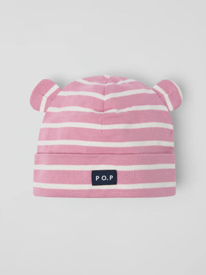 Striped beanie hat in 100% organic cotton jersey for your little one. This hat is adorned with ears and has a foldup brim that can be adjusted to fit baby’s head.