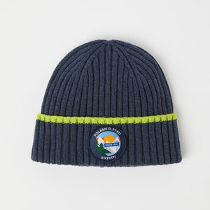 Ribbed hat in 100% wool. The beanie has a soft turn-up with a pretty appliqué on the front.