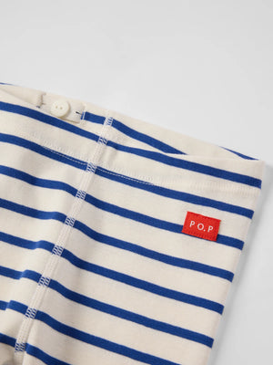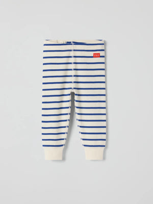 Ribbed jersey trousers in soft organic cotton for baby. A perfect everyday essential, whether at home or at nursery! Features our classic stripe and an adjustable elastic waistband with buttonhole elastic. Finished with soft cuffs at the ankles.