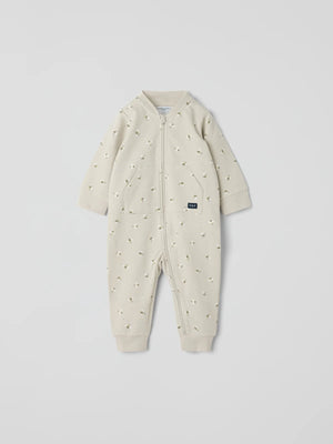 A cute all-in-one made in the softest, organic cotton sweatshirt fabric for your little one, with a brushed lining. This all-in-one has soft, ribbed cuffs and ankles for a comfortable fit. The neck-to-ankle zipper facilitates dressing, while the chin guard is gentle on the chin and cheeks.