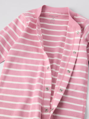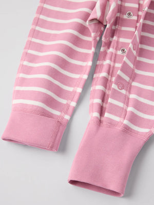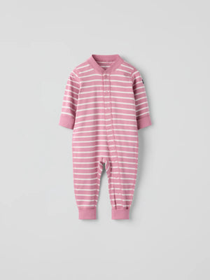 Our classic striped overall in soft organic cotton – perfect as both pyjamas and loungewear! This overall has extra-soft, flat seams that are gentle on sensitive skin. The cuffs at the sleeve and legs are extra long and can be folded down as your little one grows. The neck-to-ankle poppers facilitate dressing.