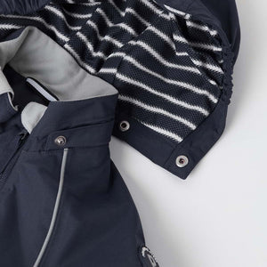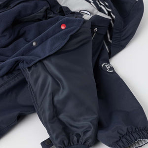 This versatile wind and waterproof navy baby overall locks out the cold, while the fleece lining can be removed to provide a spring waterproof.This practically designed all-in-one rain suit for babies has double zips for adjustable ventilation when baby is in a pushchair, and for easy dressing making it ideal for outdoor play at nursery.