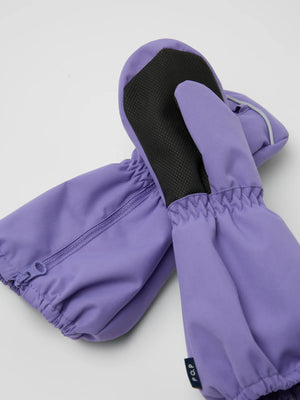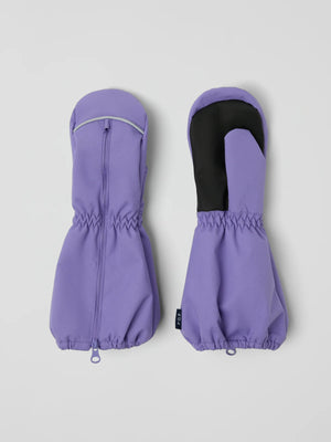 Wind- and waterproof mittens. The mittens have a comfy fleece lining and a long zipper on the upper side to make them easy to put on and take off. The mittens have reflectors at the front and a grip-friendly surface on the palms. The zipper is not waterproof.