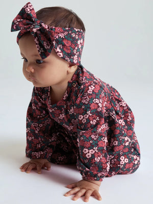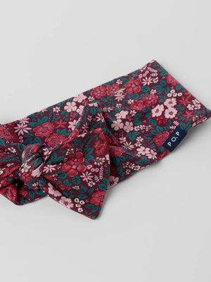 Elastic headband in soft, organic cotton jersey. The headband features an allover print of small hearts and a fancy bow.