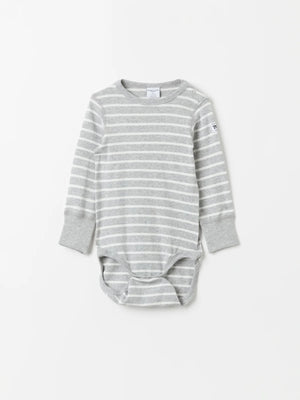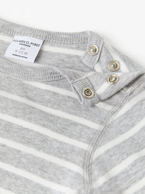 Classic since 1976! Organic cotton bodysuit in Polarn O. Pyret stripes for baby. Snaps at the shoulder and the crotch facilitate dressing and diaper changing.